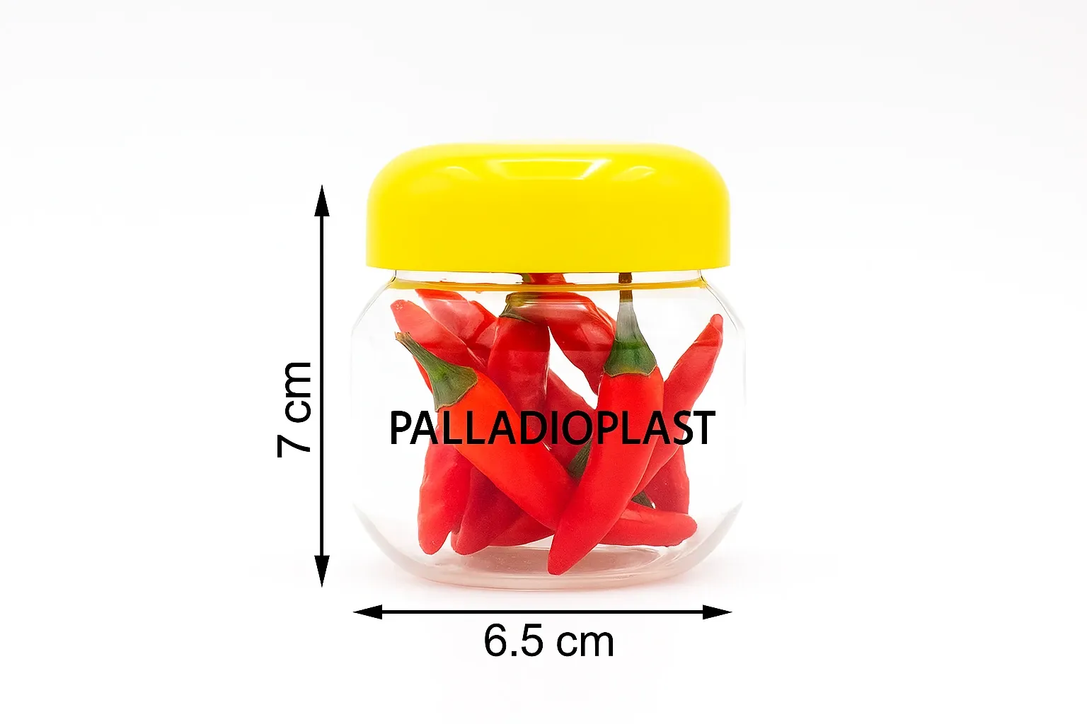 - عسل طبیعی و دستساز: درب زرد رنگ و بدنه شفاف جلوهای گرم و صمیمی به بستهبندیهای خانگی یا فروشگاههای محلی میدهد.